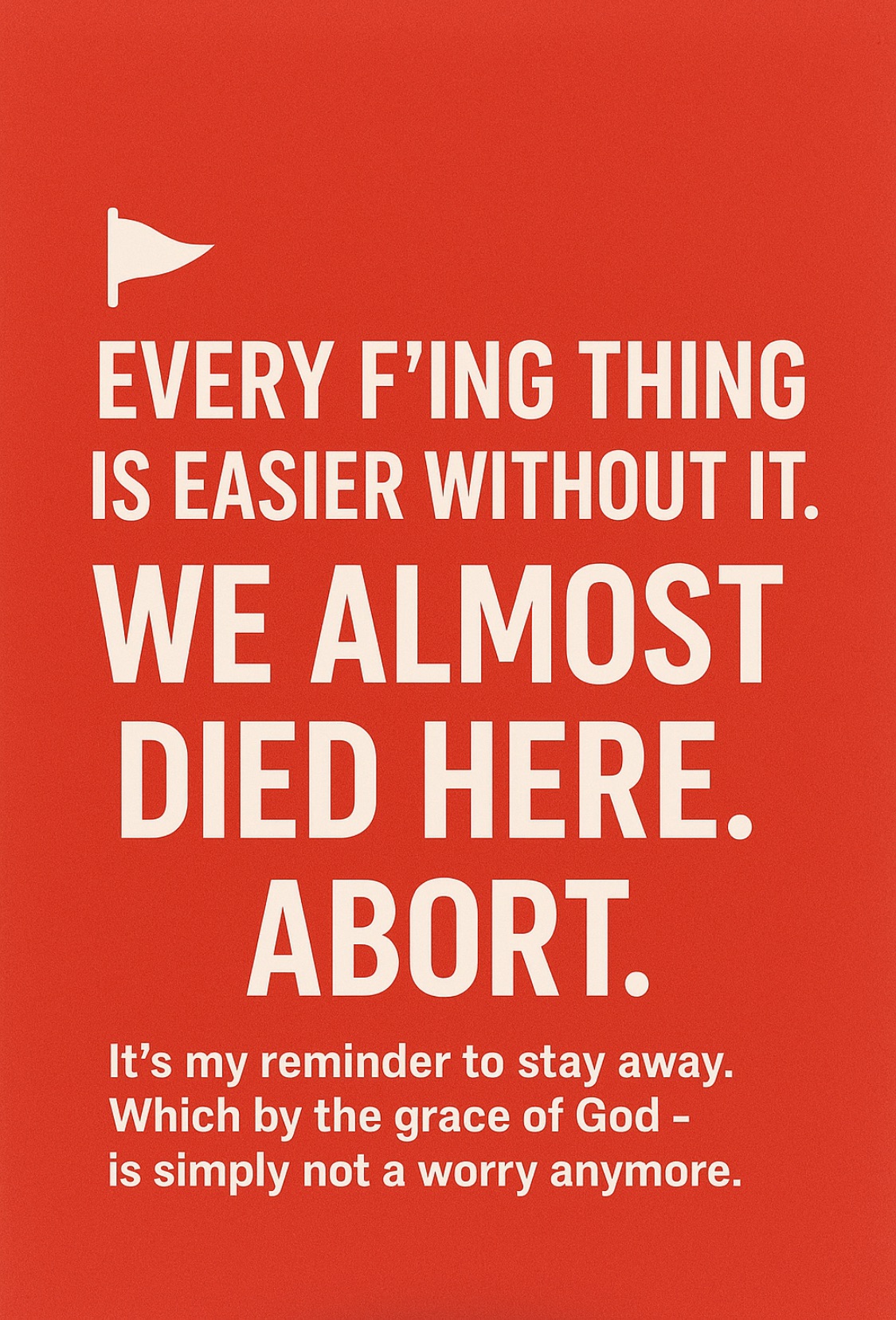 🚩 Every F’ing thing is easier without it. WE ALMOST DIED HERE. ABORT.